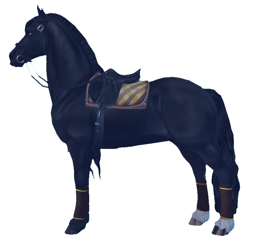 Alternative: Zaumzeug und Sattel schwarz. (kein Sportsattel)